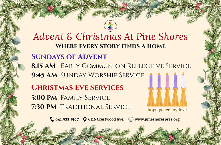 At Pine Shores Presbyterian Church in Sarasota, we follow Jesus with open hearts.